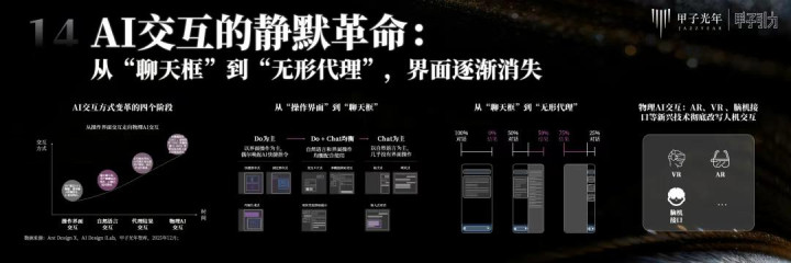 产品形态走向“无头化”,软件被拆解为API供智能体直接调用。“最好的UI是忘记UI”,交互方式正经历从聊天框走向“无形代理”的静默革命,AI将隐形于业务流中成为第一调度实体。